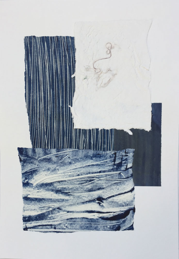 monotype, encre, papier de riz, papier maison avec fils de soie